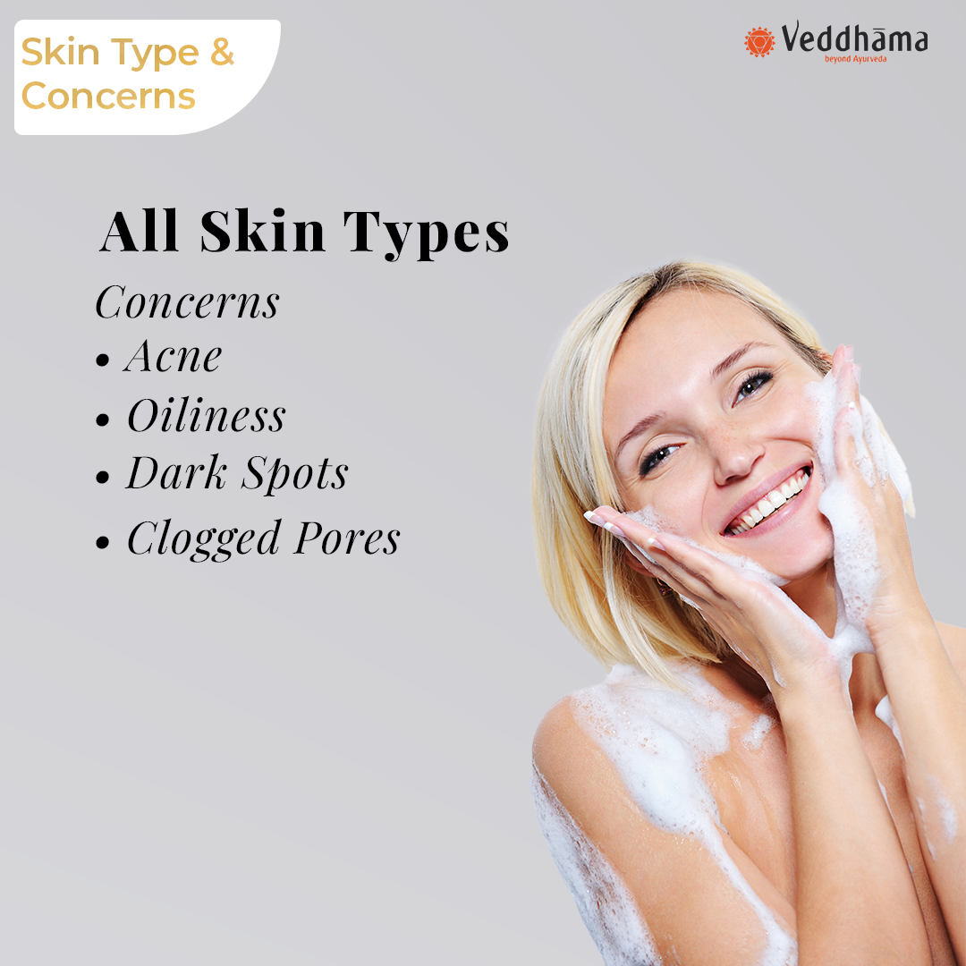 Neem & Aloe Vera wash away impurities without dryness.