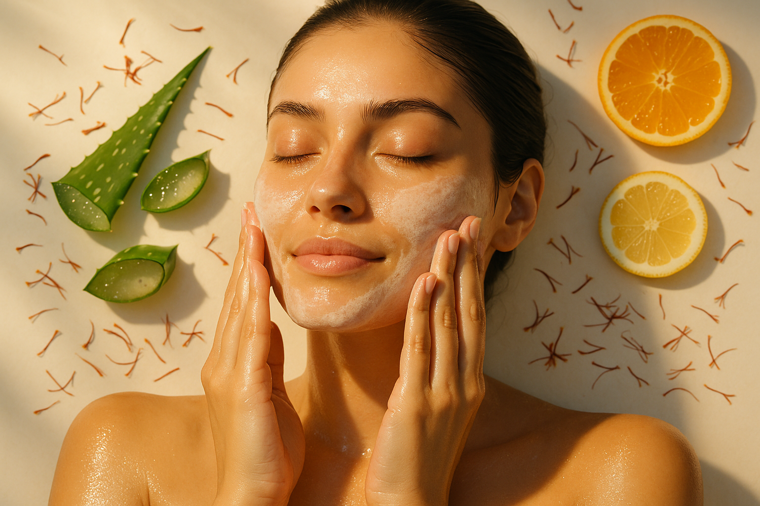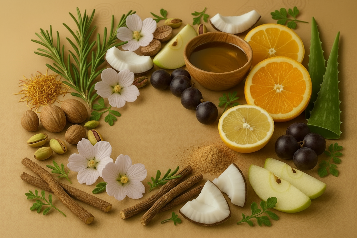 Ayurvedic Glow Blend – Kesar + Aloe + Citrus extracts for brightness & hydration.