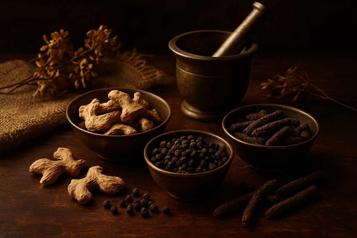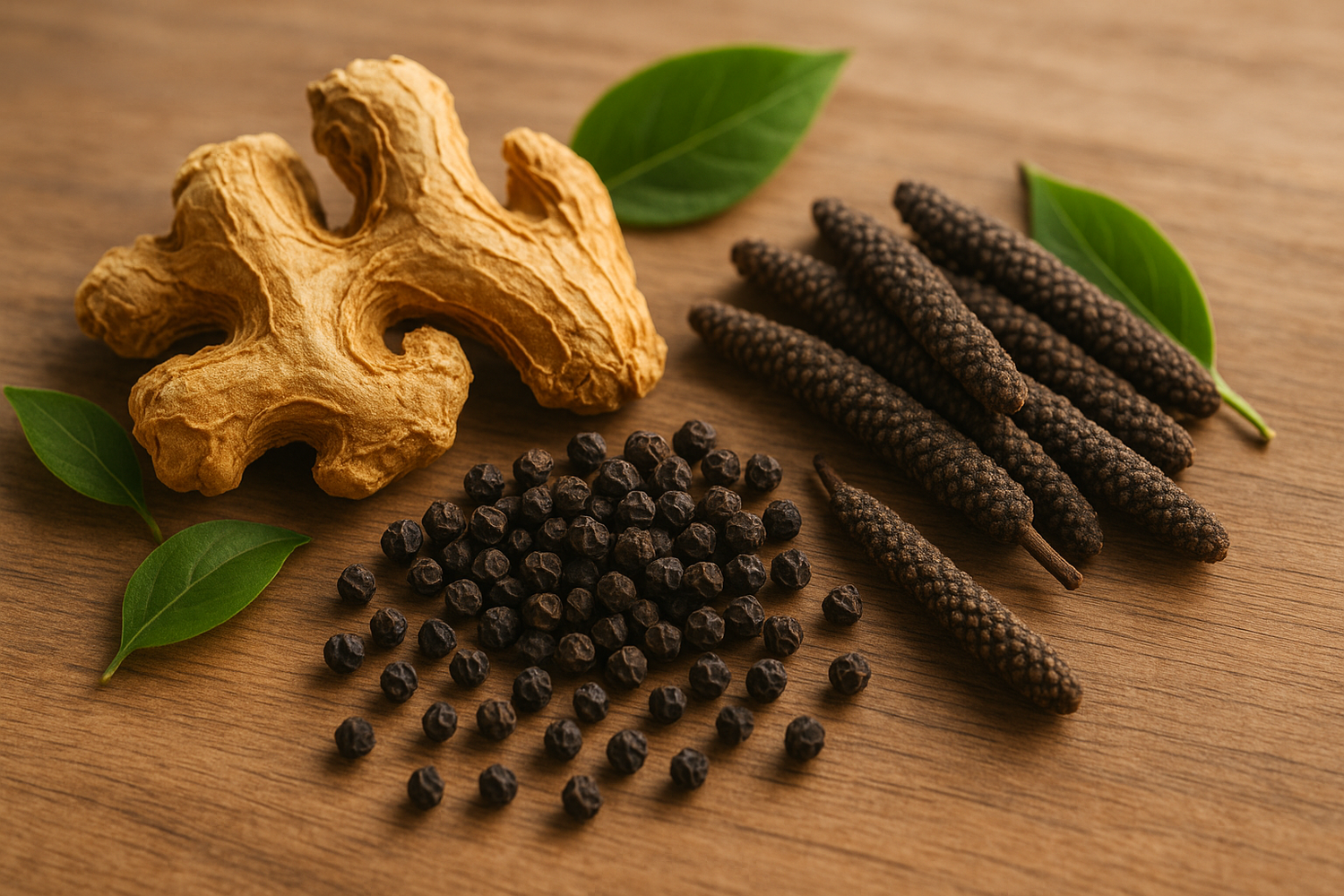 Shunthi, Maricha & Pippali work together to stimulate Agni.
