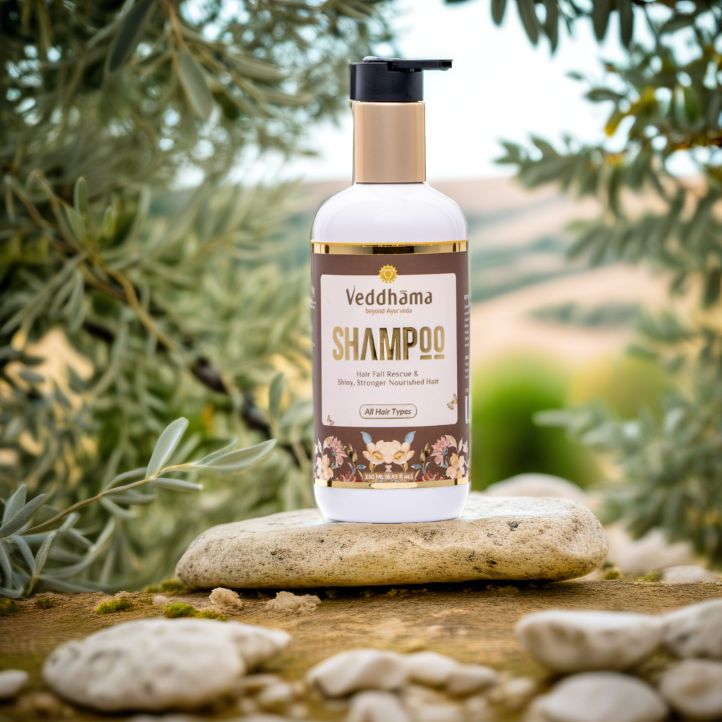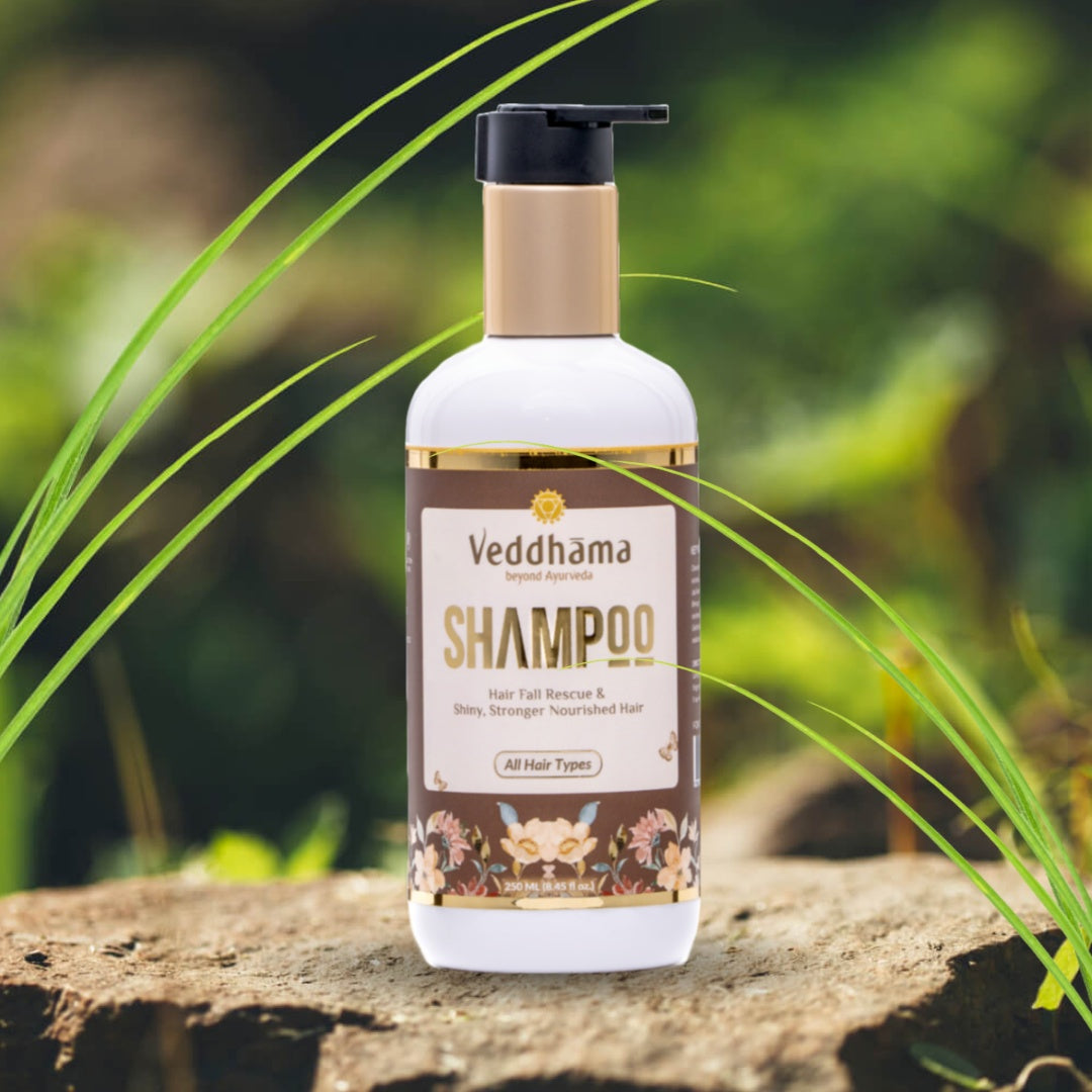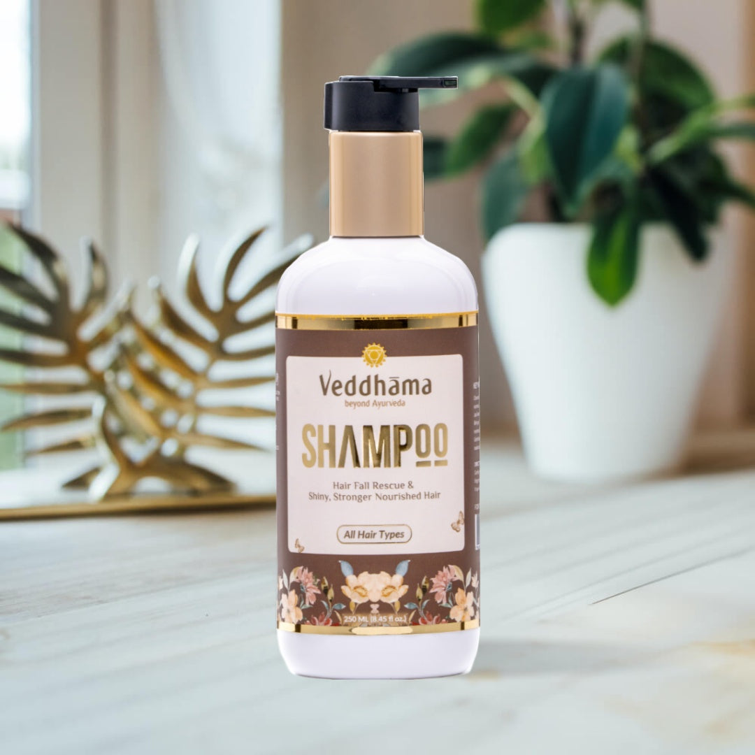 Veddhama Hair Shampoo features 16 Ayurvedic herbs, including Amla (associated with hair strength) and Jatamansi (traditionally known to support growth), carefully chosen to nurture vibrant, healthy-looking hair.